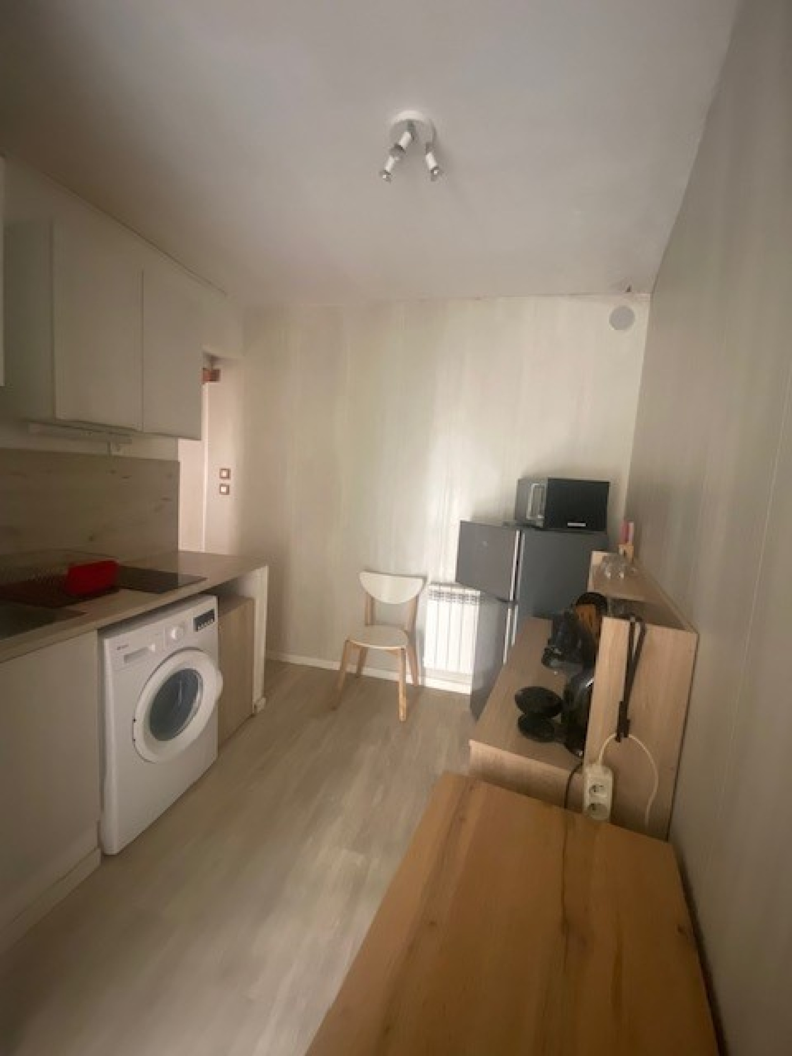 Dans une Résidence de Standing, beau STUDIO meublé avec petit exterieur et entrée privative comprenant une cuisine séparée et équipée (meubles haut et bas, micro-onde, plaque, frigo, machine à laver, machine à café), une grande pièce à vivre climatisée avec mezzanine, et une salle d'eau avec WC.