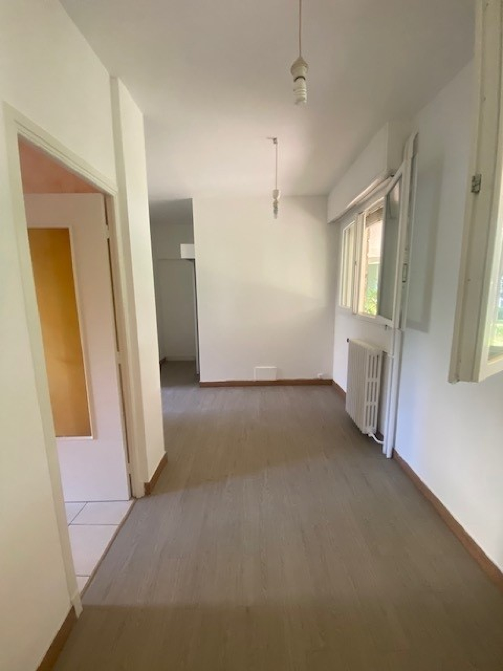 Dans une Résidence Sécurisée, beau 2 pièces au Rez-de-Chaussée comprenant une grande pièce à vivre, une cuisine separée semi-équipée (meubles haut et bas, plaque), une chambre et une salle d'eau avec WC.