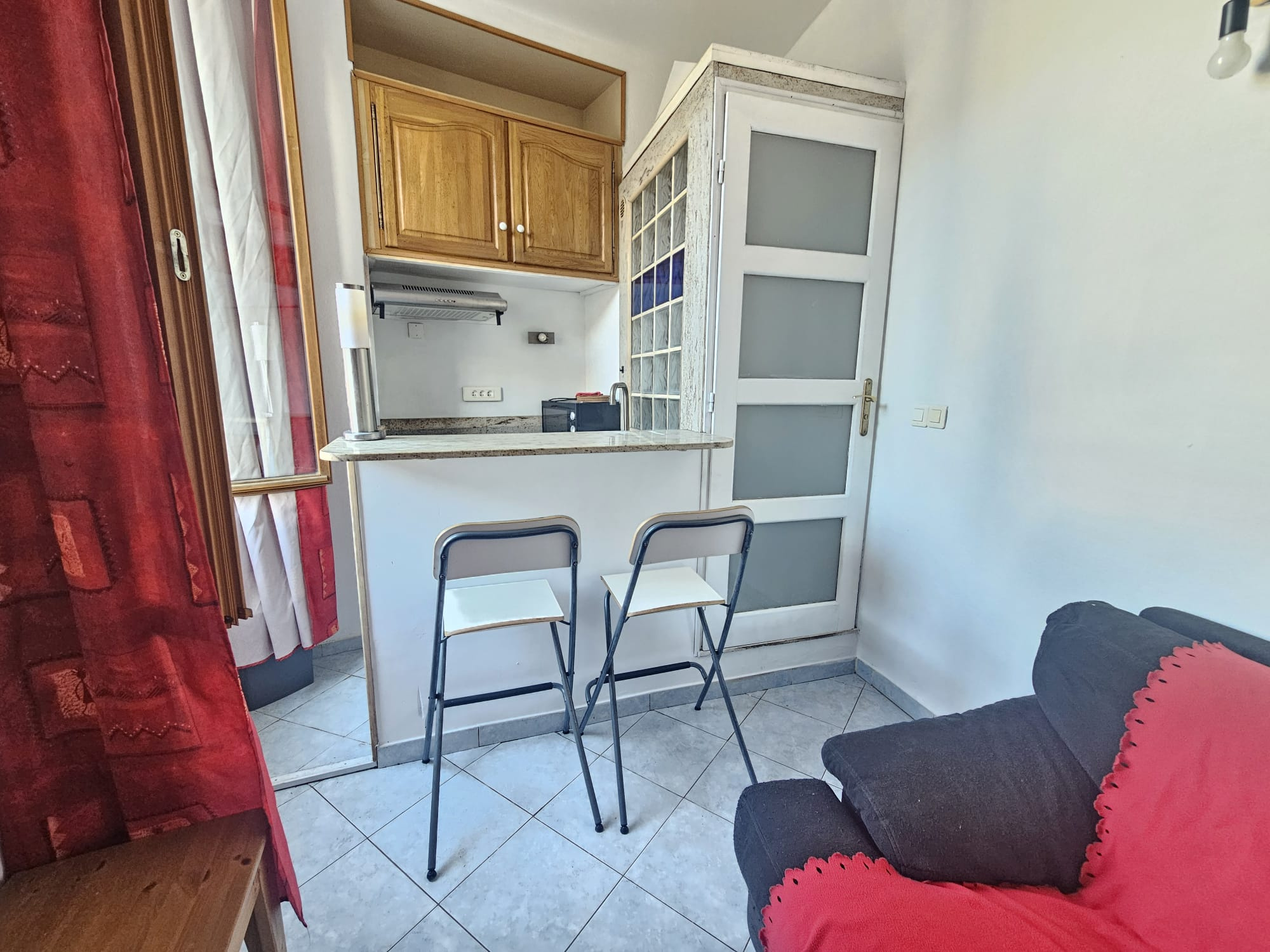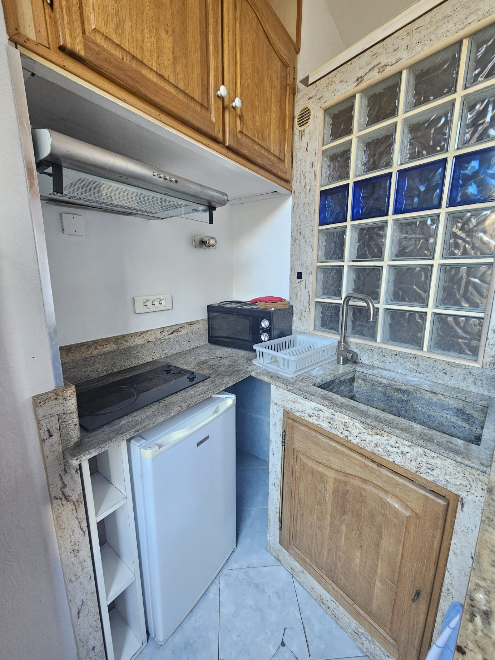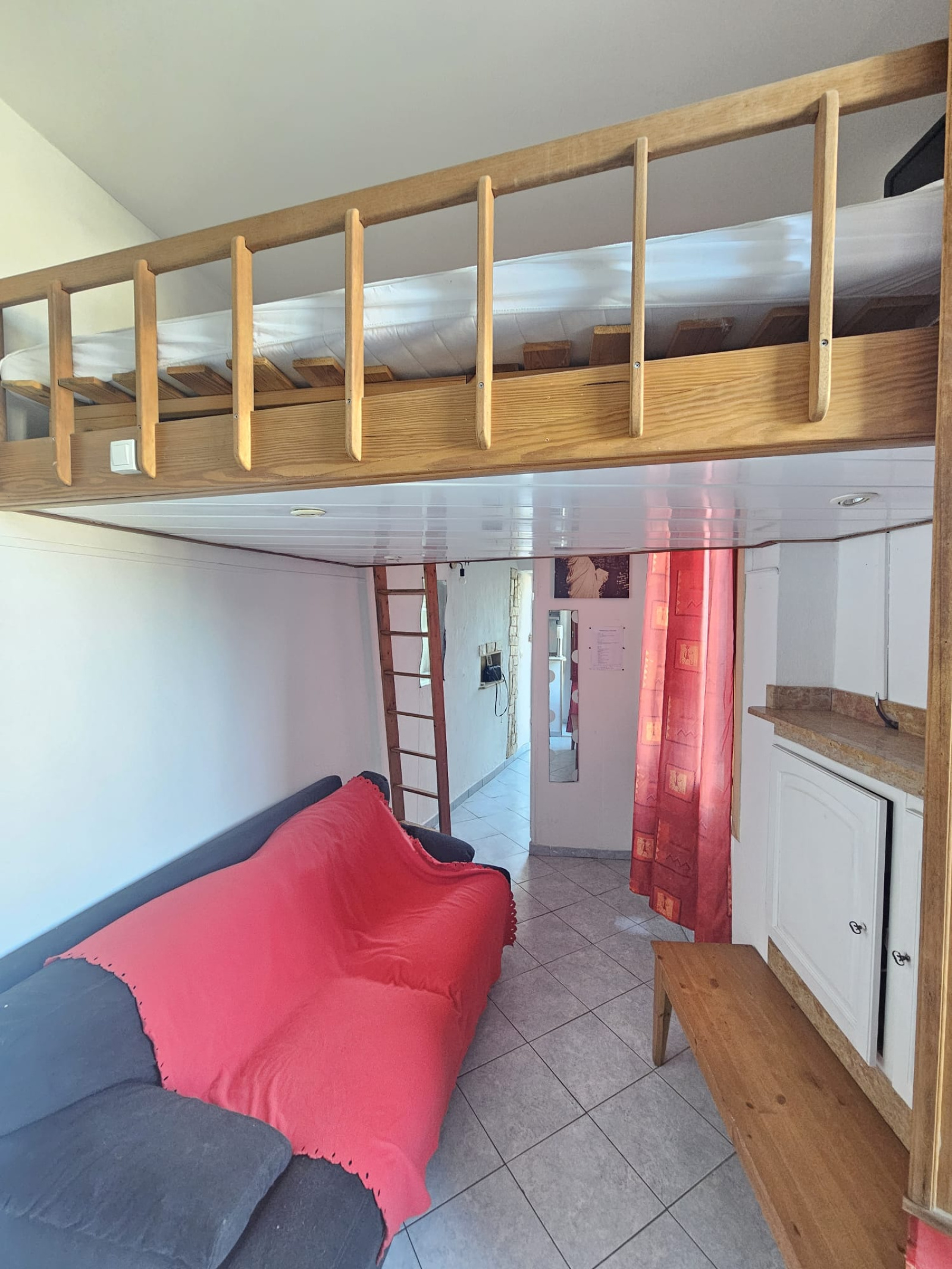 Dans une Résidence sécurisée avec entrée individuelle, STUDIO meublé de 16.02 m2 comprenant une pièce à vivre avec mezzanine, une kitchennette (meubles haut et bas, frigo, plaque, hotte, mini four), et une salle d'eau avec WC.
