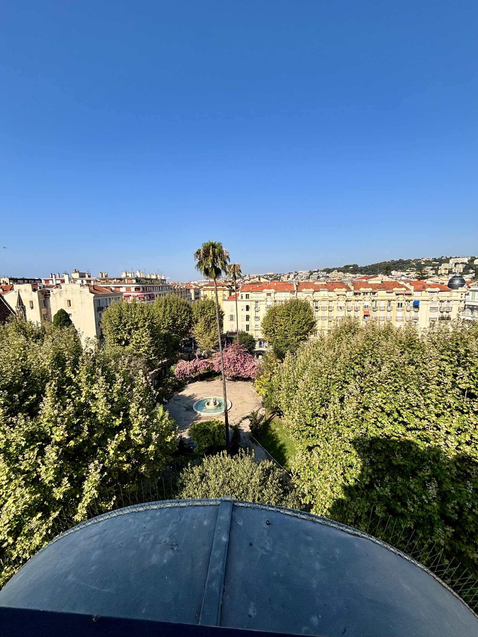 Studio de 21m², exposé Sud et Ouest, bénéficiant d'une magnifique vue dégagée sur la ville et les jardins.